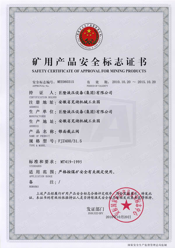 > 企業(yè)概況 > 產(chǎn)品證書(shū)
